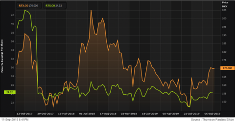 | Kurs | Børsværdi (mio. kr.) | Omsætning 2018 (mio. kr.) | EBITDA-margin, % | |