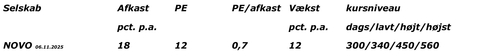 Der kan forventes et afkast i det høje niveau frem mod 2029 på 18 pct. p.a., og aktien er alligevel prissat i det meget lave niveau med PE på bare 12 og med PE/afkast på kun 0,7, samt en forventet kursudvikling til kurs 400 – 500 i perioden. Fra aktieanalytikerkorpset er vurderingerne følgende for kursudviklingen i de kommende 12 måneder: