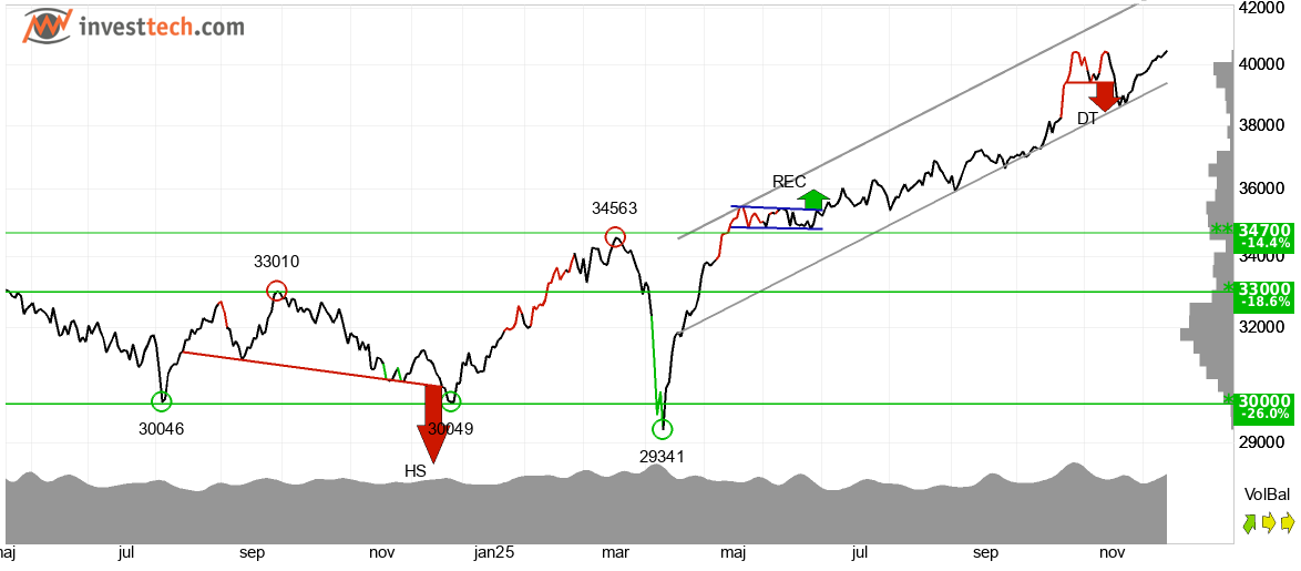 Det finske OMX Helsinki GI-indekset er placeret i en stigende trendkanal på mellemlang sigt, hvilket signalerer en vedvarende positiv markedsudvikling og voksende købsinteresse blandt investorerne. Der er ingen modstand i kursdiagrammet, og et videre opsving indikeres. Ved reaktioner tilbage har indekset støtte ved cirka 34700 points. Indekset er dermed teknisk positive på mellemlang sigt.