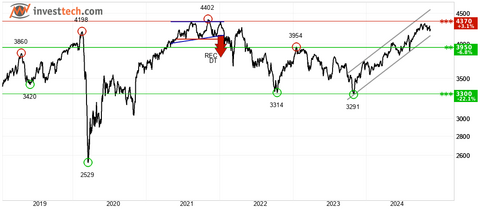 Det belgiske BEL 20-indeks ligger i en stigende trendkanal på lang sigt. Dette signalerer øgende optimisme blandt investorerne og indikerer videre kursopsving for aktierne noteret op den belgiske børs. Indekset nærmer sig dog modstanden omkring 4370 points, noget som kan give en reaktion ned. Et brud op gennem 4370 points vil imidlertid være et købssignal. Investtechs optimismeindeks for børsen i Bruxelles, viser en overvægt af optimister blandt langsigtede investorer. BEL 20 indekset anses samlet set teknisk svagt positiv på lang sigt. Vurdering, 3 til 18 måneders sigt: Svagt køb.